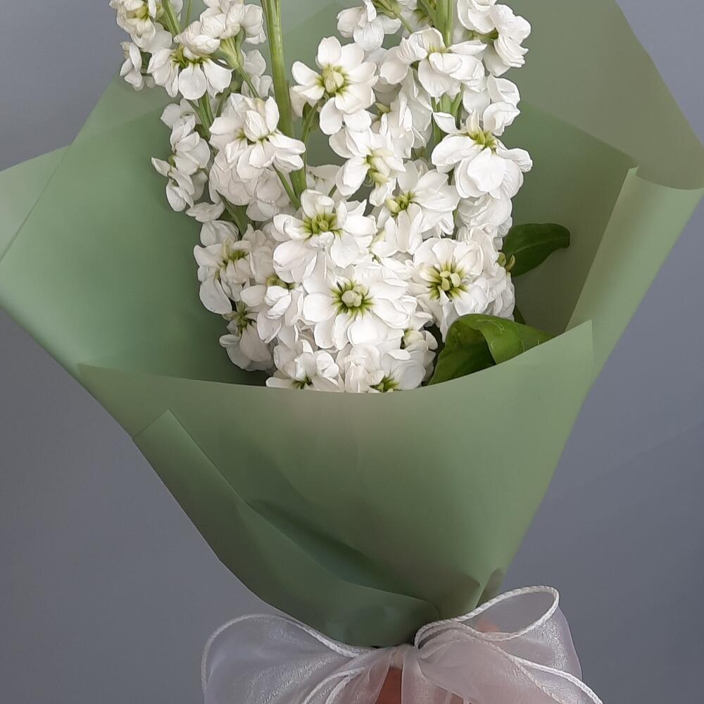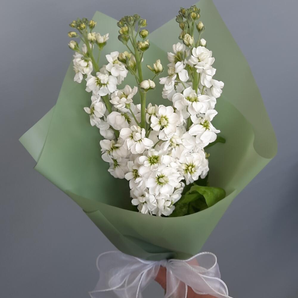 Упаковка дизайнерская – 2 шт.Лента органза – 2 шт.Маттиола белая – 3 шт.