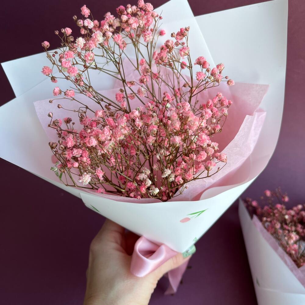 Стабилизированная розовая гипсофила в весенней упаковке