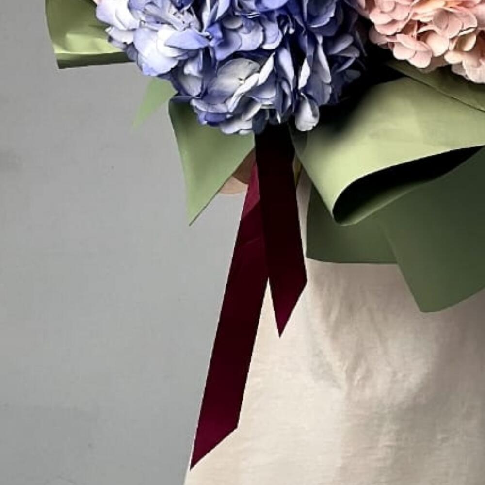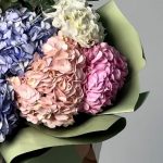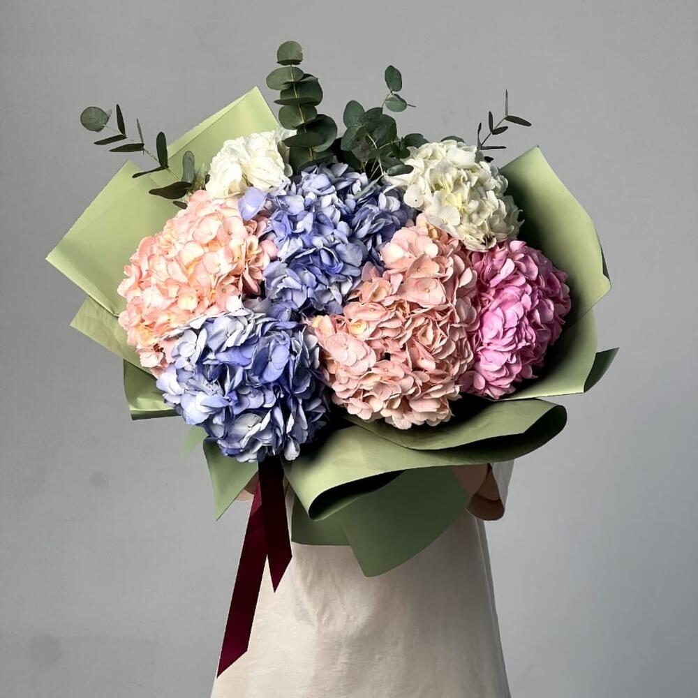Букет голубої гортензіі і півоній
