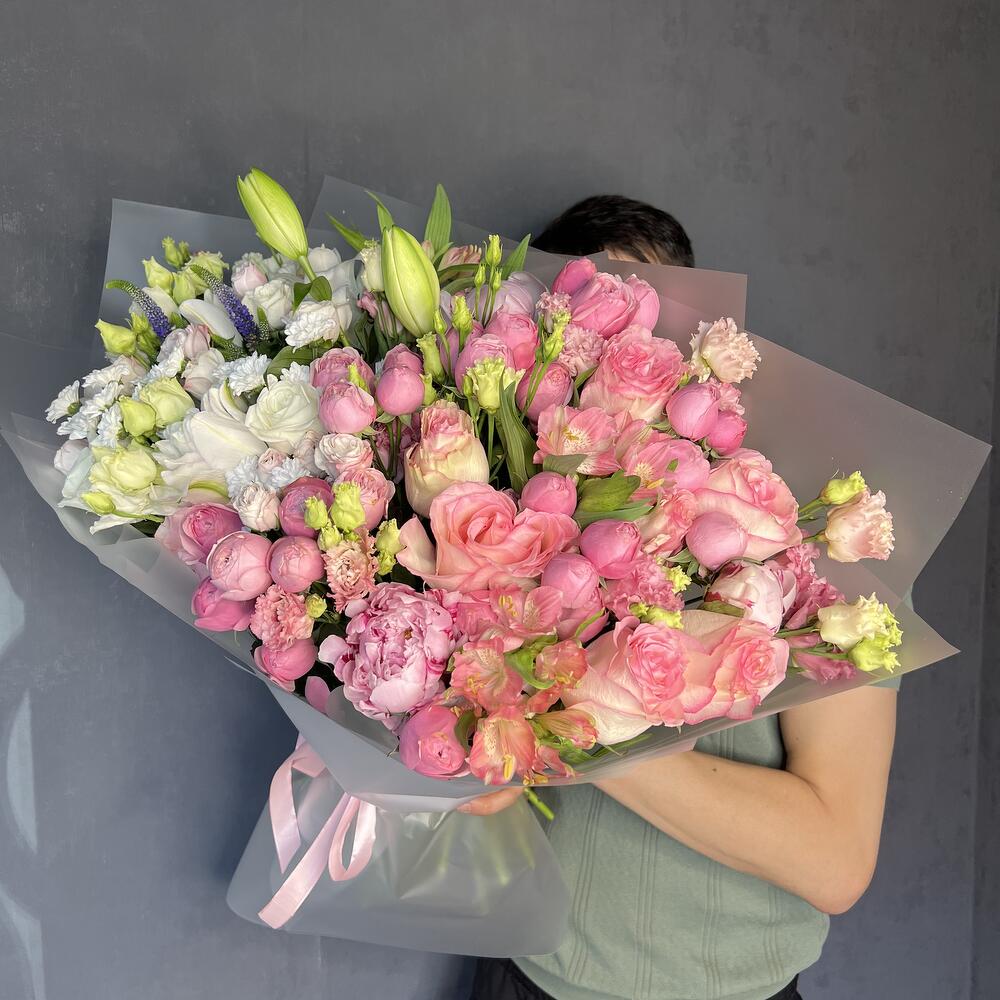 Альстромерии, Кустовые розы, Лизиантусы, Пионовидные розы, Розы, Ромашки