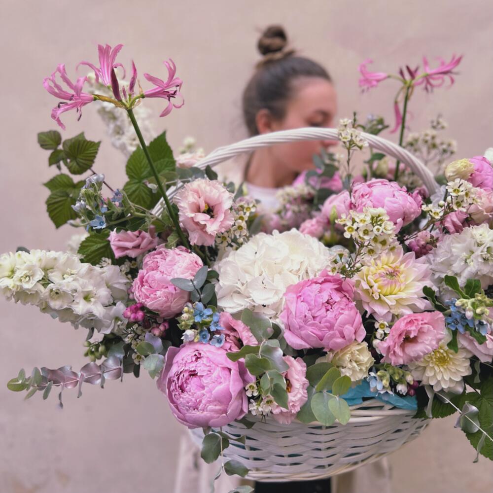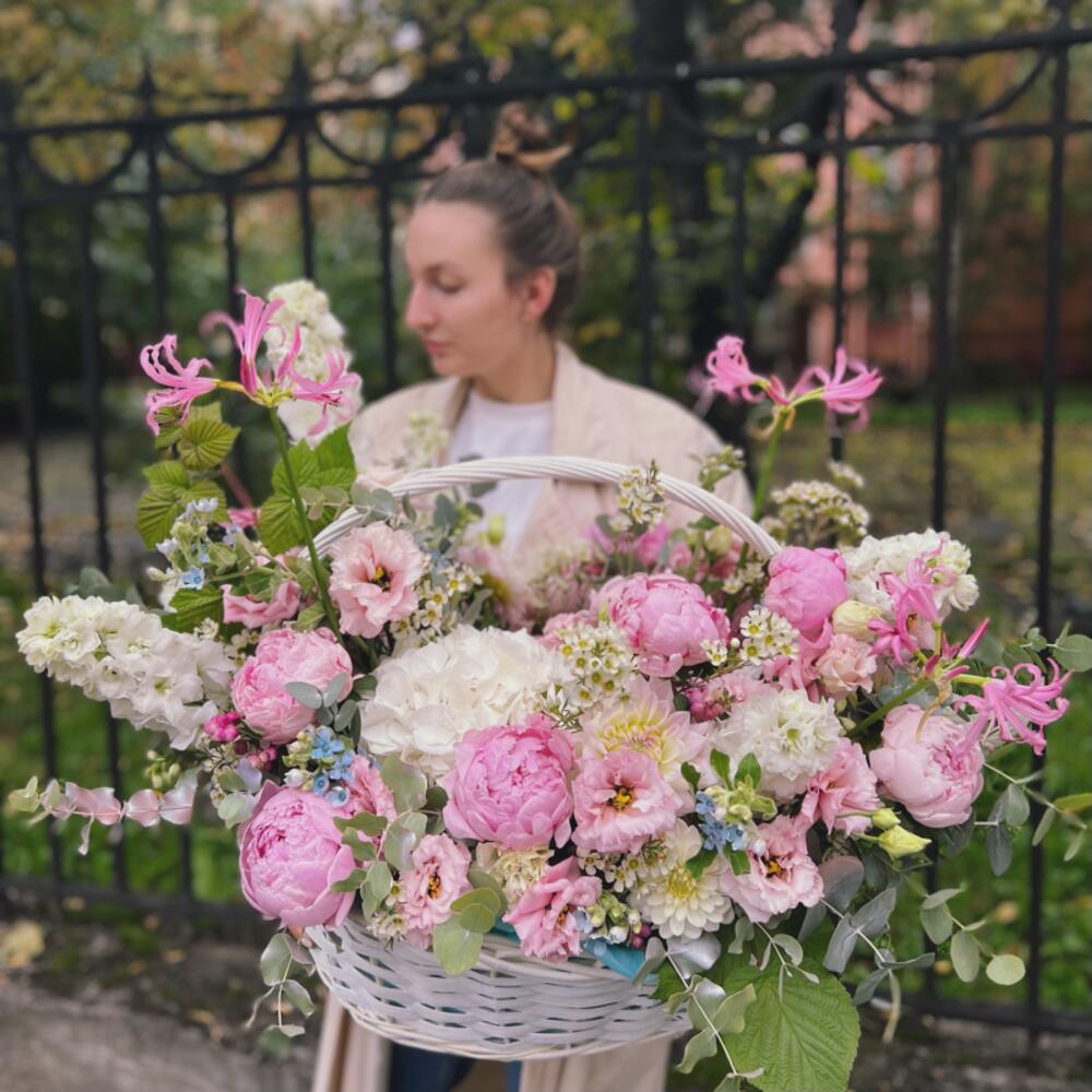 Большая корзина с пионами "WILD FLOWER"