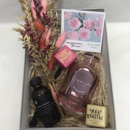 “Атлас☁️” – цветочная композиция с зефиром в деревянном ящике