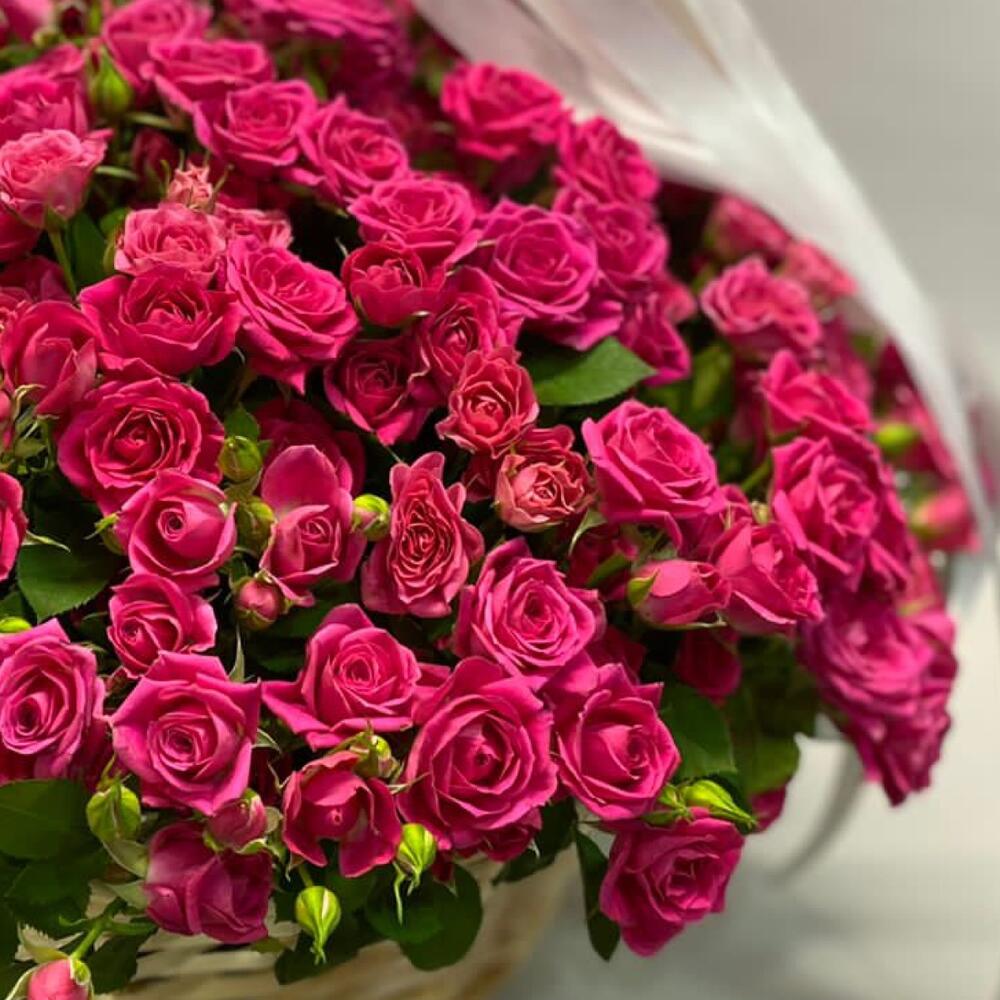 Роза кустовая – 101 шт.Корзина – 1 шт.