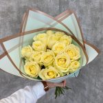 Роза – 15 шт.Корейская упаковка – 3 шт.Атласная лента – 1 шт.