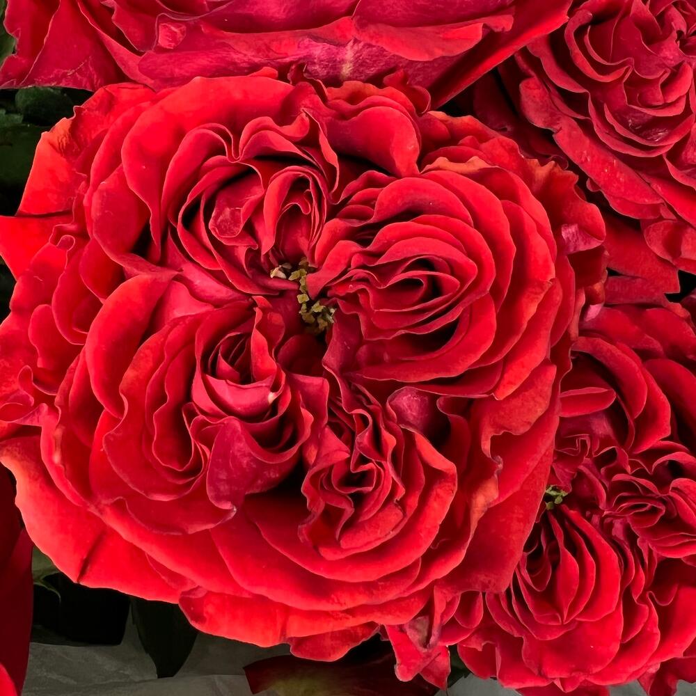 23 высоких красных роз с зелёной сердцевинной