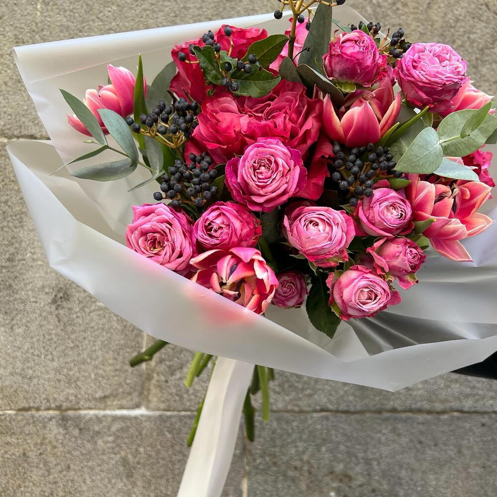 Кустовые розы, Пионовидные розы, Розы, Сухоцвет, Тюльпаны