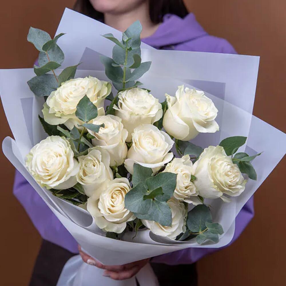 Эвкалипт цинерея – 1 шт.Роза эквадор 50 см – 11 шт.