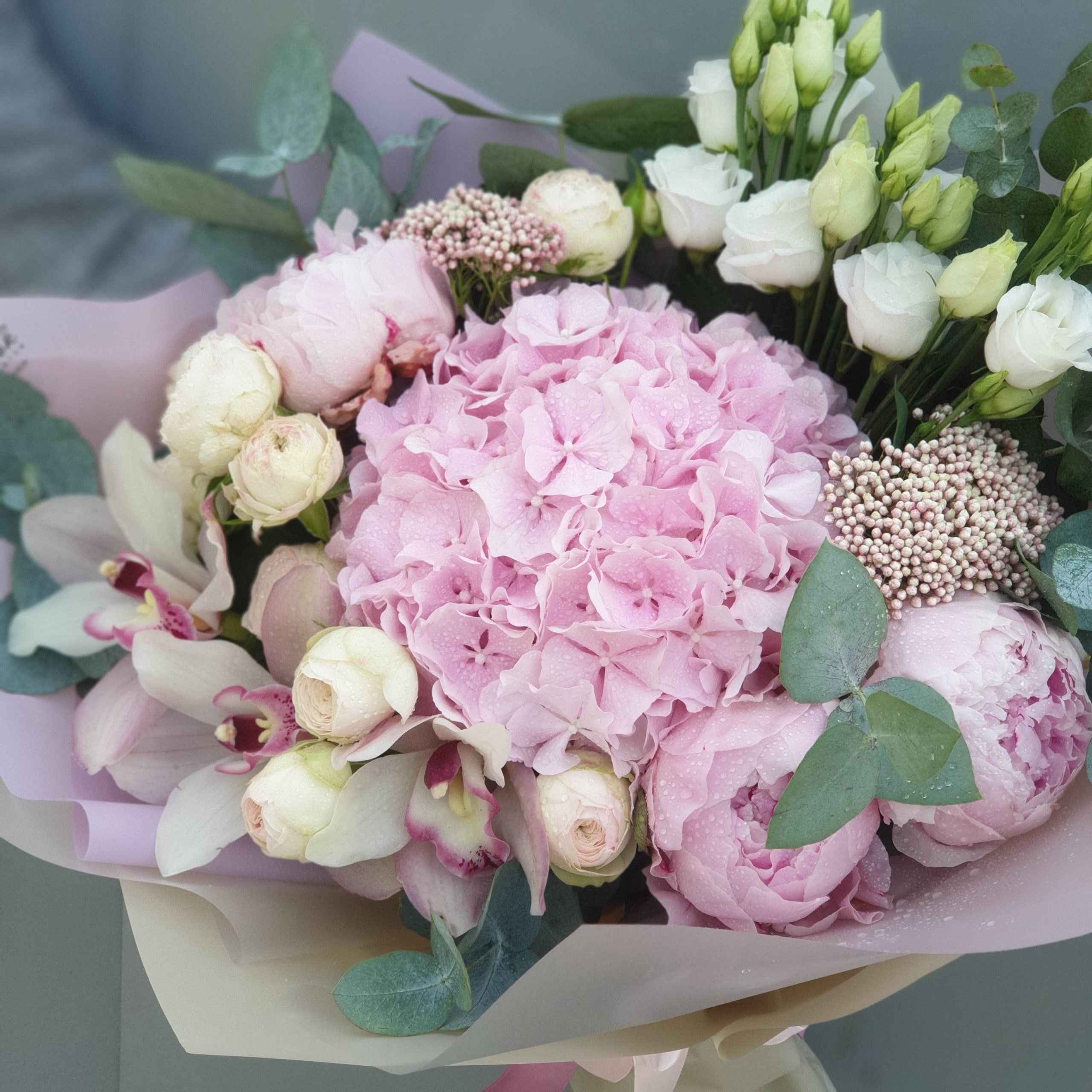 Кустовые розы, Лизиантусы, Пионы, Розы, Хризантемы