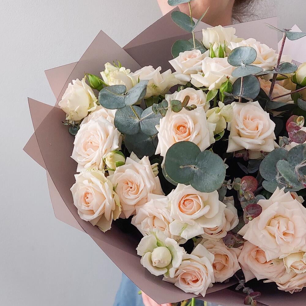 Букет из кустовых роз и эвкалипта