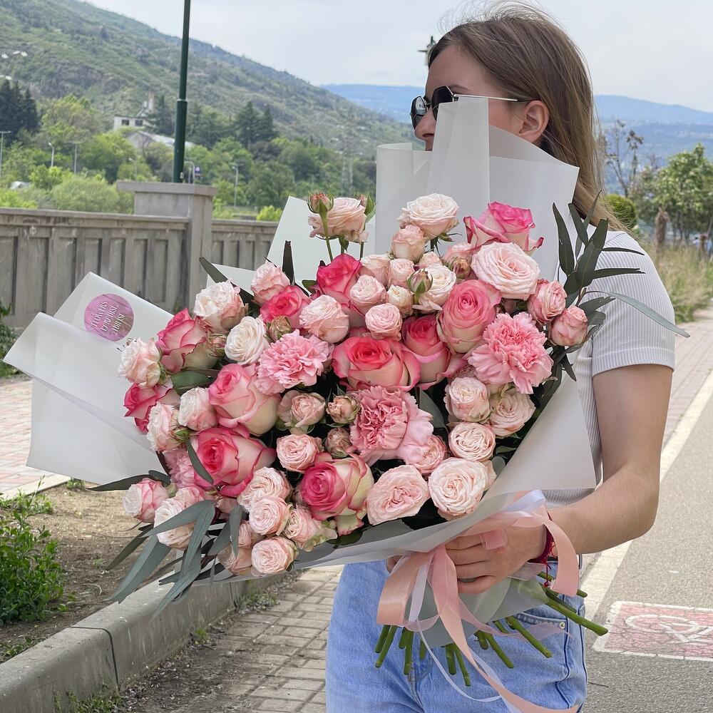 Наша авторская сборка позволяет нам создавать уникальные и неповторимые букеты, которые подходят для любого случая. Доставка по городу Тбилиси бесплатная.