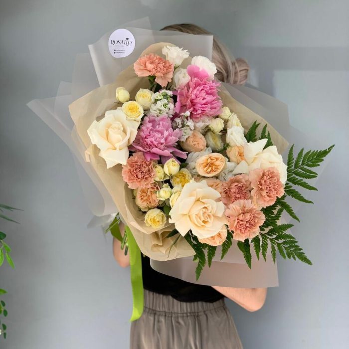 Гвоздики, Кустовые розы, Лизиантусы, Пионовидные розы, Розы