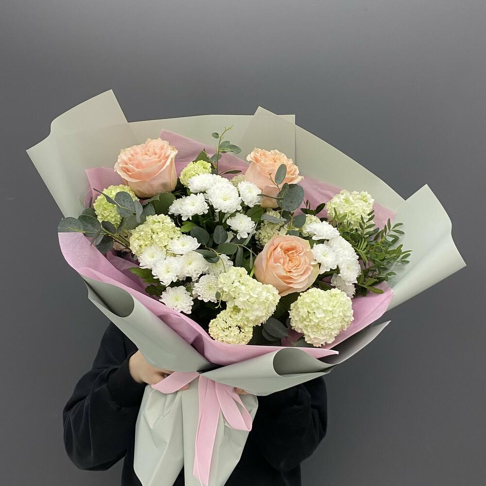 Гвоздики, Кустовые розы, Лизиантусы, Пионовидные розы, Розы