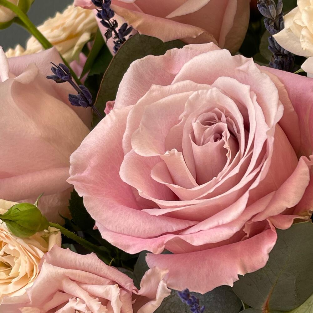 Цветочная композиция с нежными розами"Французский поцелуй"