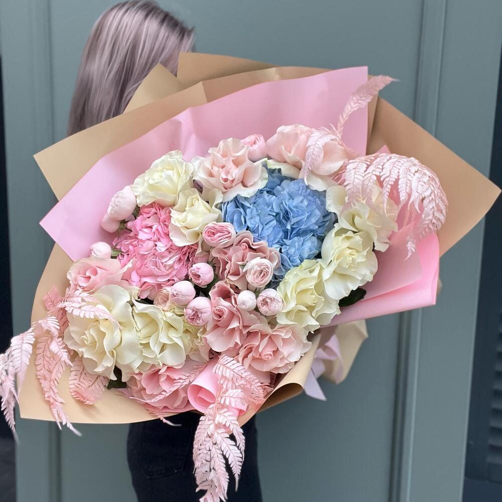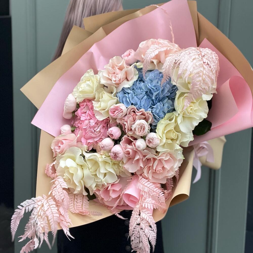 Гвоздики, Кустовые розы, Лизиантусы, Пионовидные розы, Розы