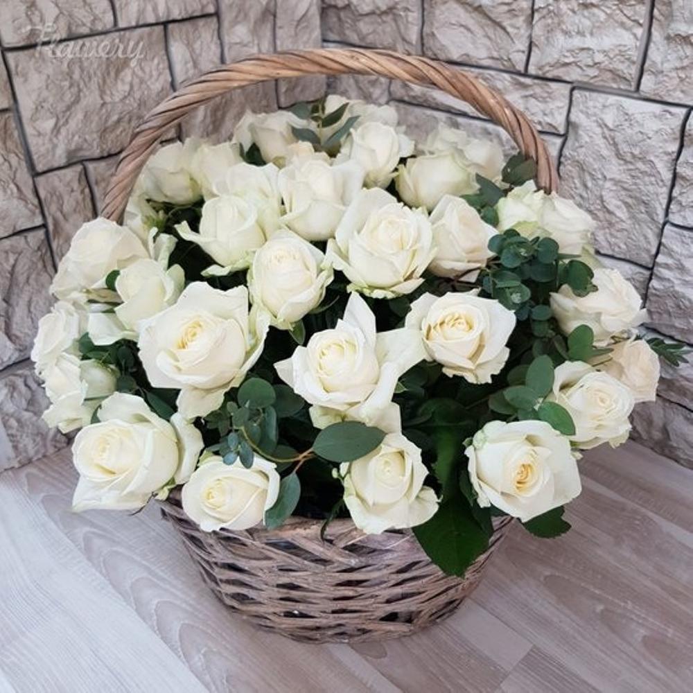 Корзина 51 белая роза