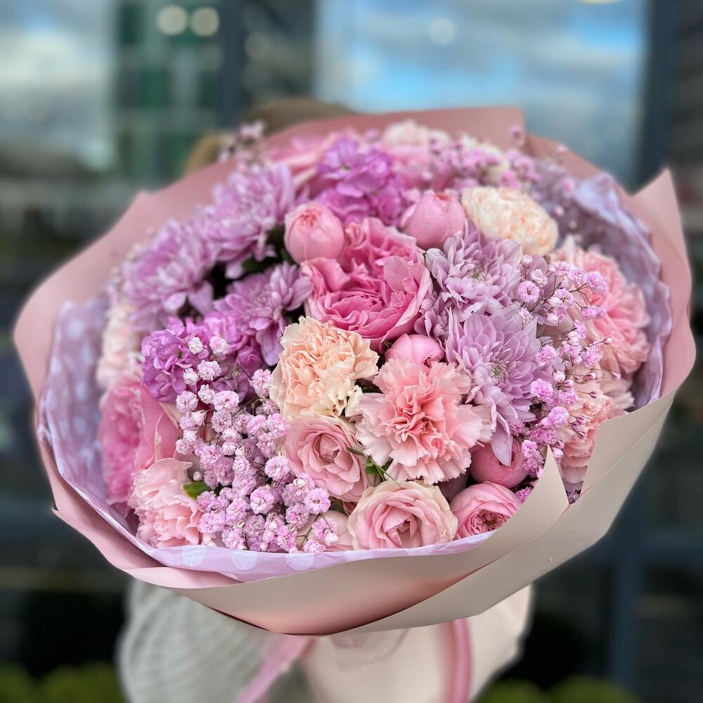 Категорий: Гвоздики, Гипсофила, Кустовые розы, Пионовидные розы, Розы, Хризантемы