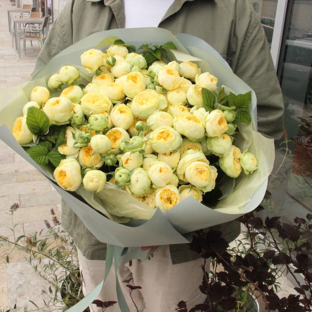Лимонный щербет - Букет с пионами и пионовидными розами
