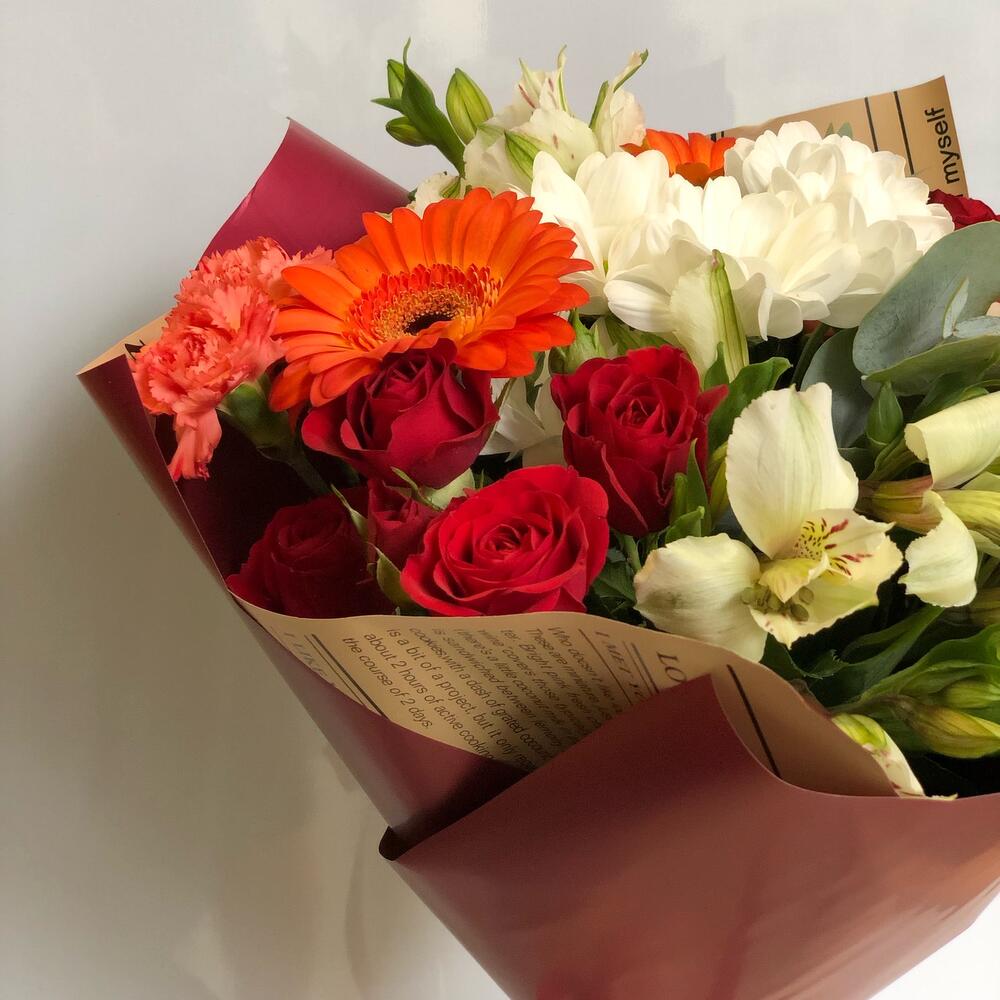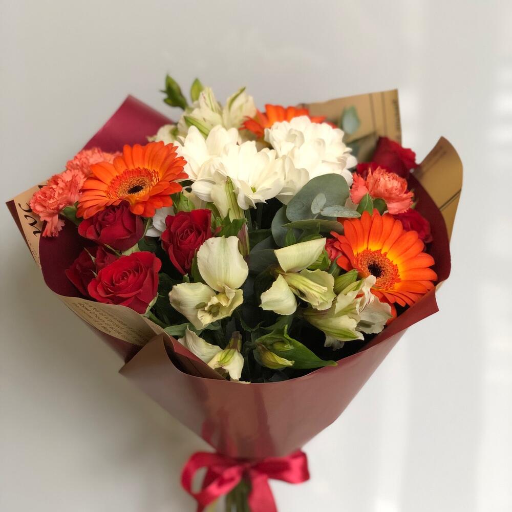 Категорий: Альстромерии, Гвоздики, Кустовые розы, Розы, Хризантемы