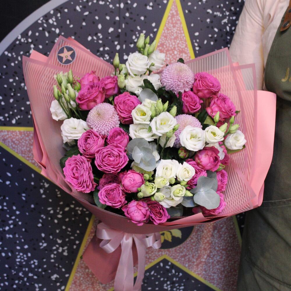 Категорий: Кустовые розы, Лизиантусы, Пионовидные розы, Розы, Хризантемы
