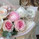 Ранункулюс – 1 шт.white o’hara роза – 3 шт.Диантус – 4 шт.Роза майра – 2 шт.гениста розовая – 2 шт.Эвкалипт Микс – 3 шт.Упаковка дизайнерская – 3 шт.Лента атласная – 1 шт.