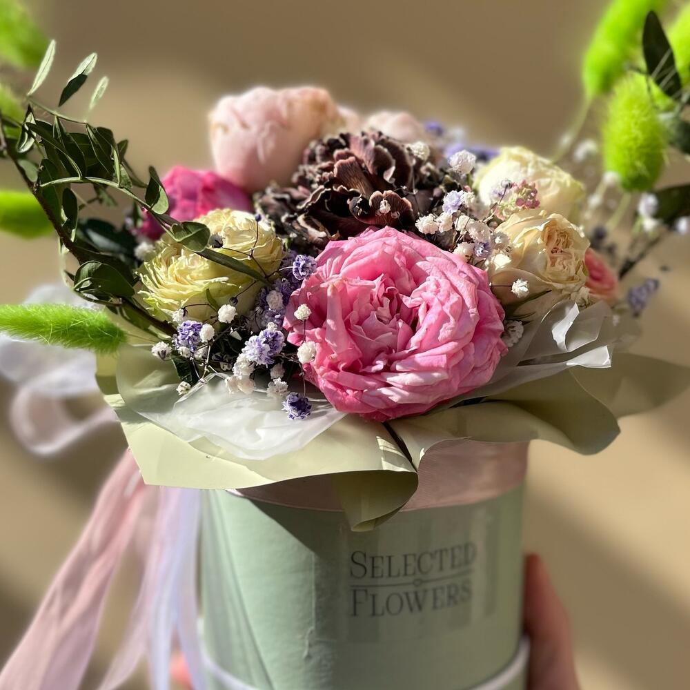 Гвоздики, Кустовые розы, Пионовидные розы, Розы