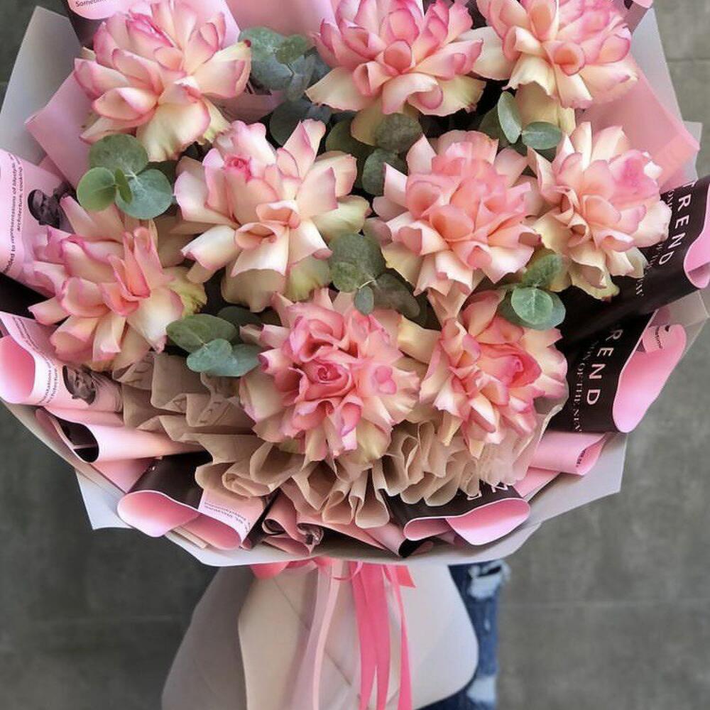 Гвоздики, Лизиантусы, Розы, Тюльпаны